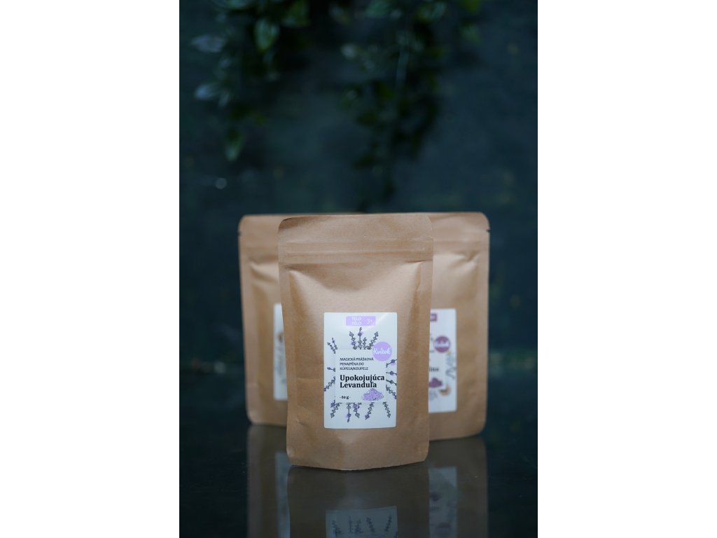 Levandule: Sodium Bicarbonate (sóda bikarbóna), Citric Acid (kyselina citrónová), Sodium Lauryl Sulphoacetate (jemný tenzid z kokosového oleja), Magnesium Sulphate Heptahydrate (epsomská soľ), Prunus Amygdalus Dulcis Oil (mandľový olej), Alkanna Tinctoria Root Powder (prášok z koreňa Alkany farbiarskej), Lavandula Angustifolia Oil (esenciálny olej Levanduľa), *Linalool